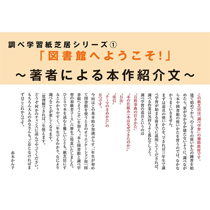 「図書館へようこそ!」、「テーマのきめかた」、「百科事典の引きかた」の図書館を利用して調べ方を学ぶための基本の3部作の第1作目