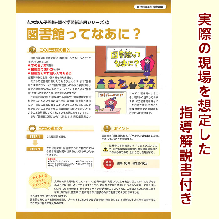 (9804-0038)埼玉福祉会 SAIFUKU/「図書館ってなあに?」/調べ学習紙芝居シリーズ16全8場面 指導案付き