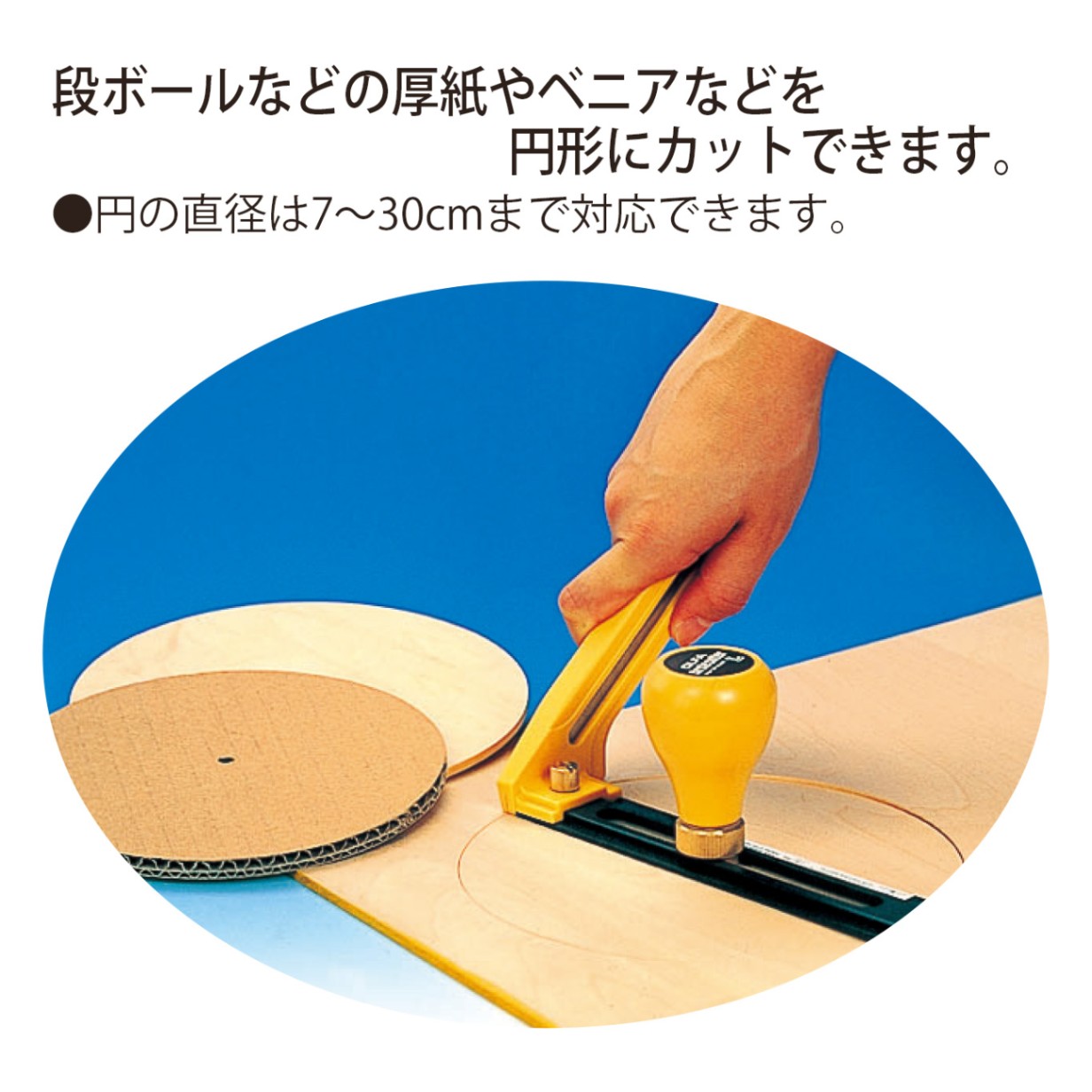段ボールなどの厚紙やべニアなどを円形にカットできます。