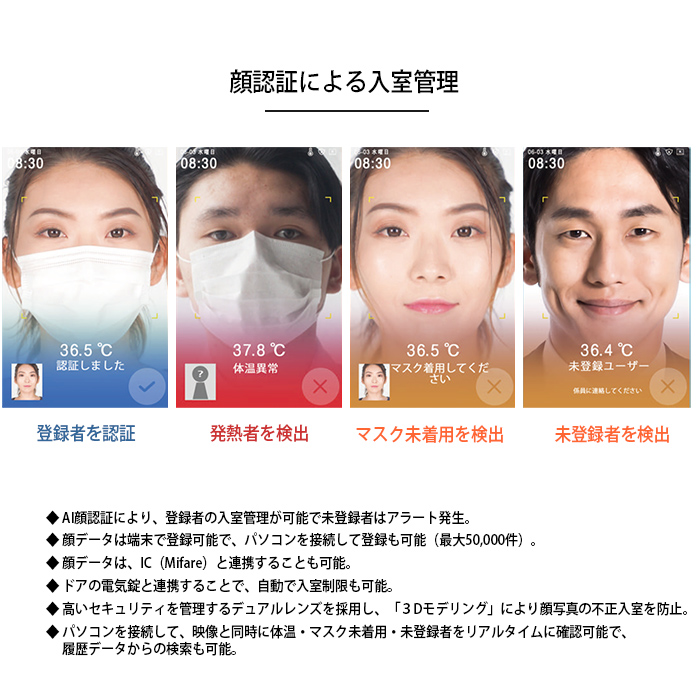 ★豊富な検知認定(体表温検知、マスク着用・未着用の検出や、入退室管理など)