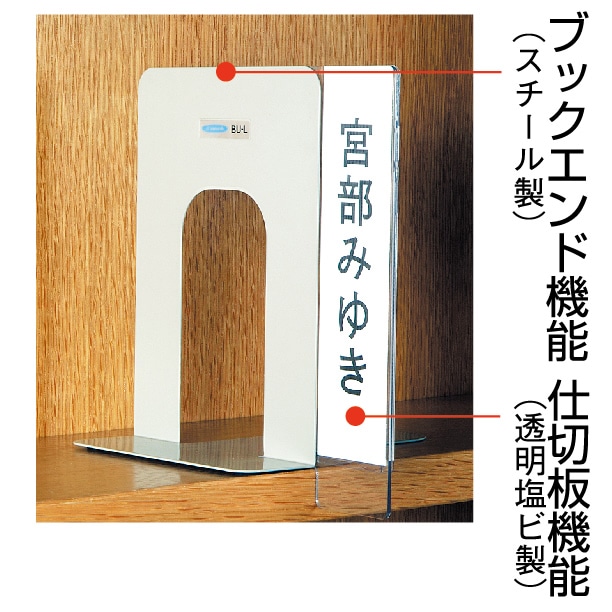 商品特長 図書・書籍の整理に。本棚用仕切り板付のブックエンドです。