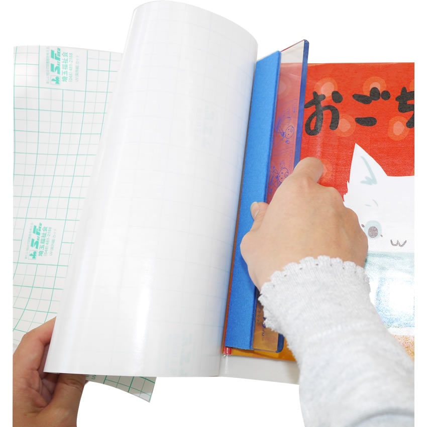 材質のポリ塩化ビニールは柔軟性があるため本の材質になじみやすく、作業性の高いフィルムです。