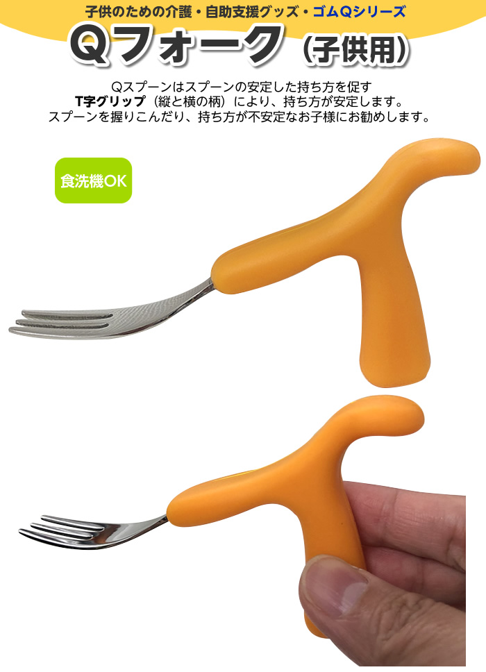 フォークの安定した持ち方を促すT字グリップ(縦と横の柄)が特徴です。
