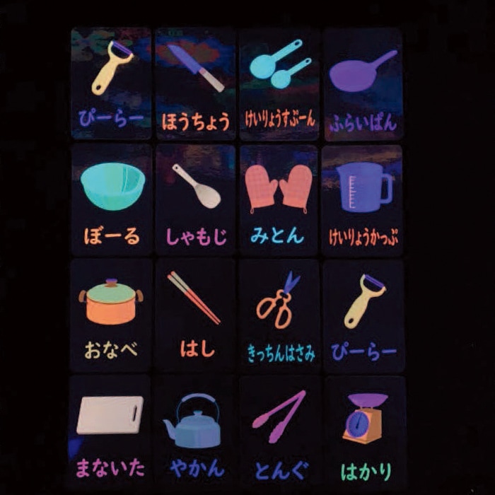 商品特長 ブラックライトでひかる、キッチンカードです。