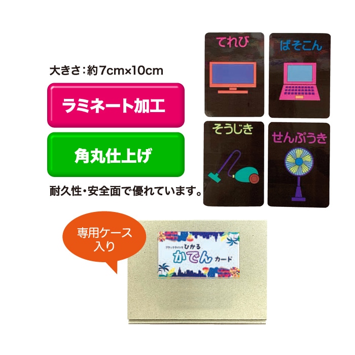 商品特長 ブラックライトでひかる、かでんカードです。