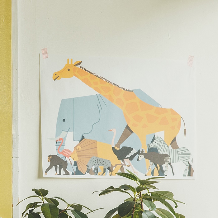 構図やカラーコントラストが印象的で、絵本の部屋などのかわいらしいアクセントになります。