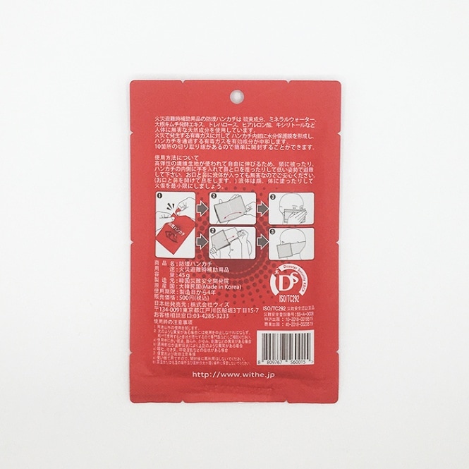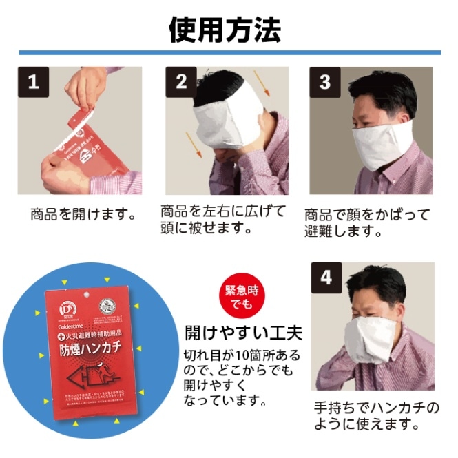 災害非常時,火事,災害,防災,火災,一酸化炭素中毒,避難用,煙,けむり,有毒物質,避難補助,避難マスク,防煙マスク,防炎ハンカチ