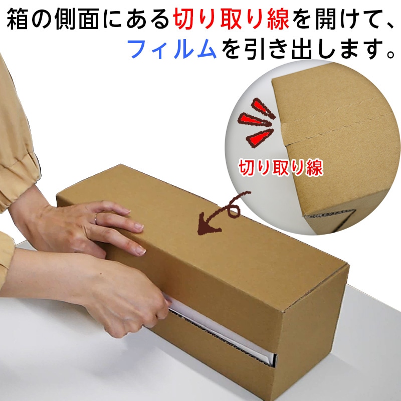 箱にフィルムをセットし、取りだし口からフィルムを引き出して使います。